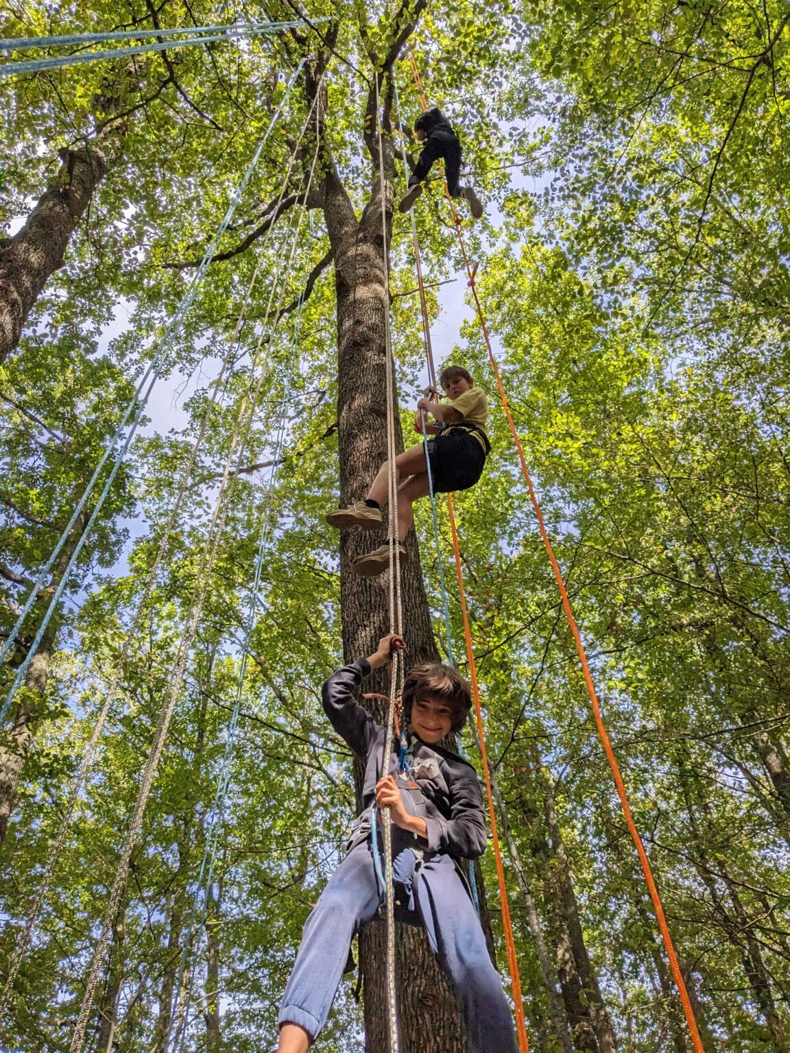 La grimpe d’arbre, c’est l’art de se déplacer dans et avec l’arbre, à l’aide de cordes et de techniques spécifiques, sans jamais l’abîmer. On prend de la hauteur en douceur, on observe, on respire, on se reconnecte à soi et au vivant. Accessible à tous, dès 7 ans, cette activité ne demande ni force ni performance, mais curiosité, confiance et envie d’explorer.