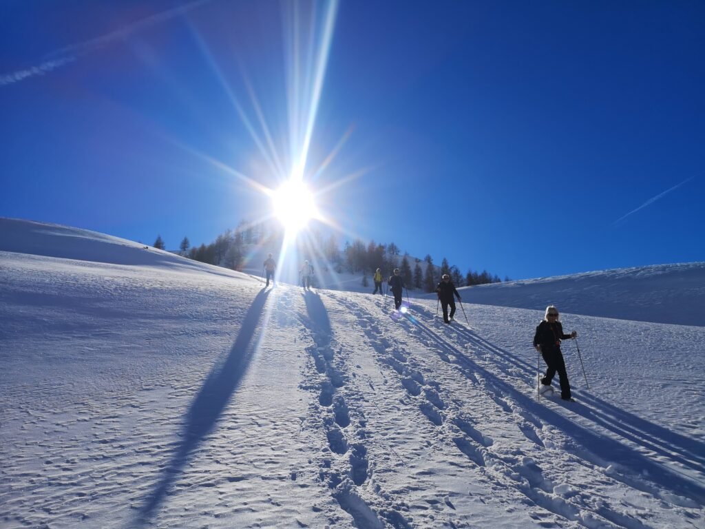 Le déplacement en raquettes à neige est facile mais reste un effort minimal en milieu enneigé. Les raquettes à neige sont fournies par le guide