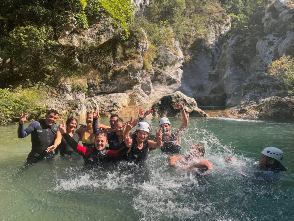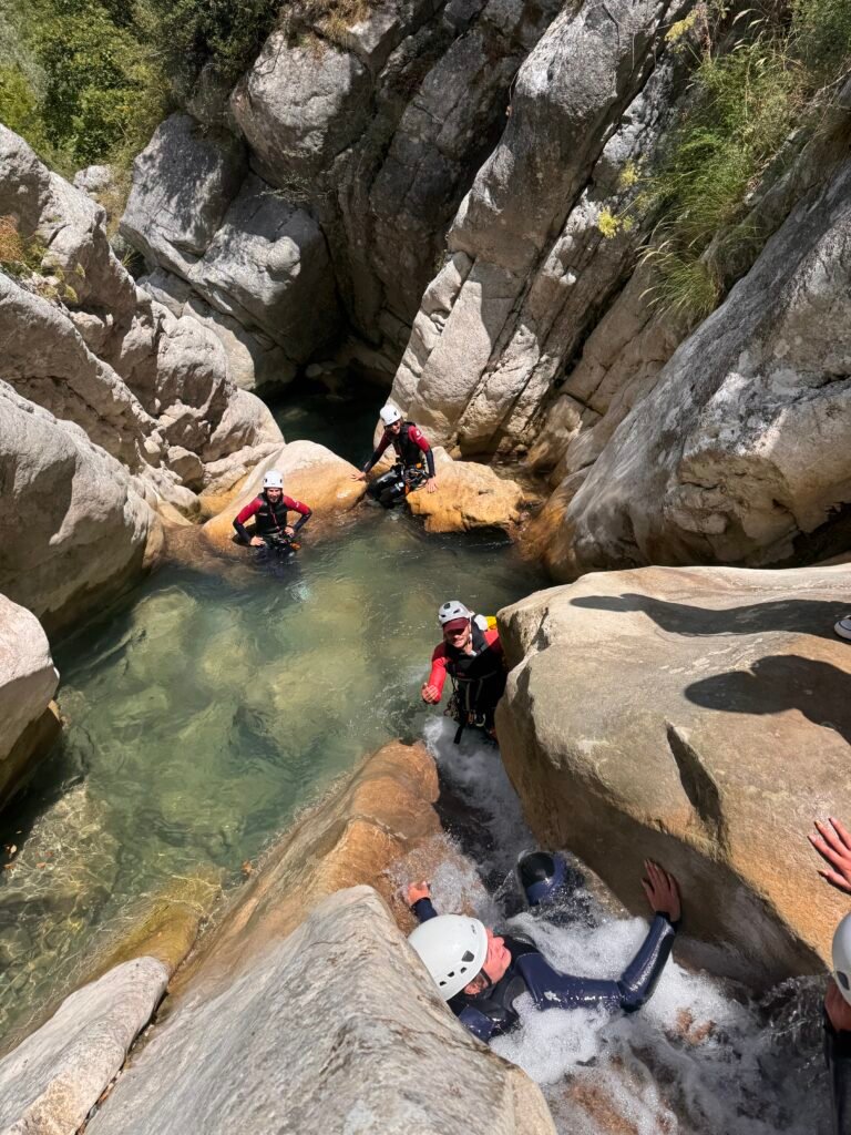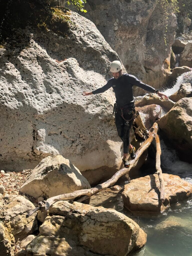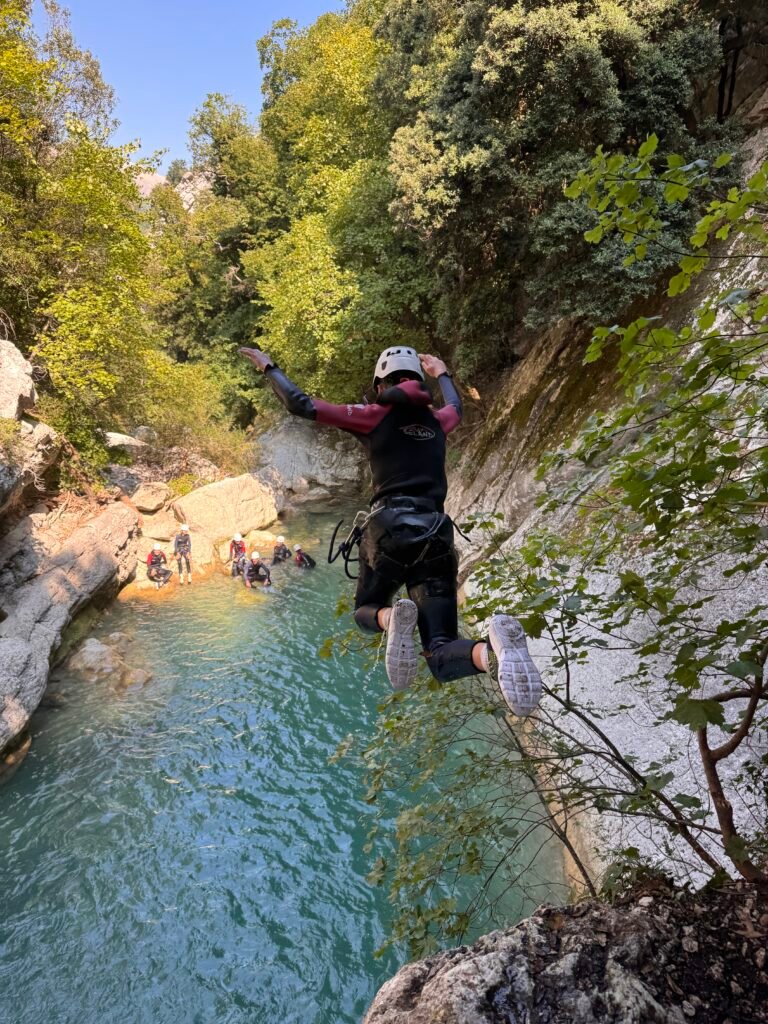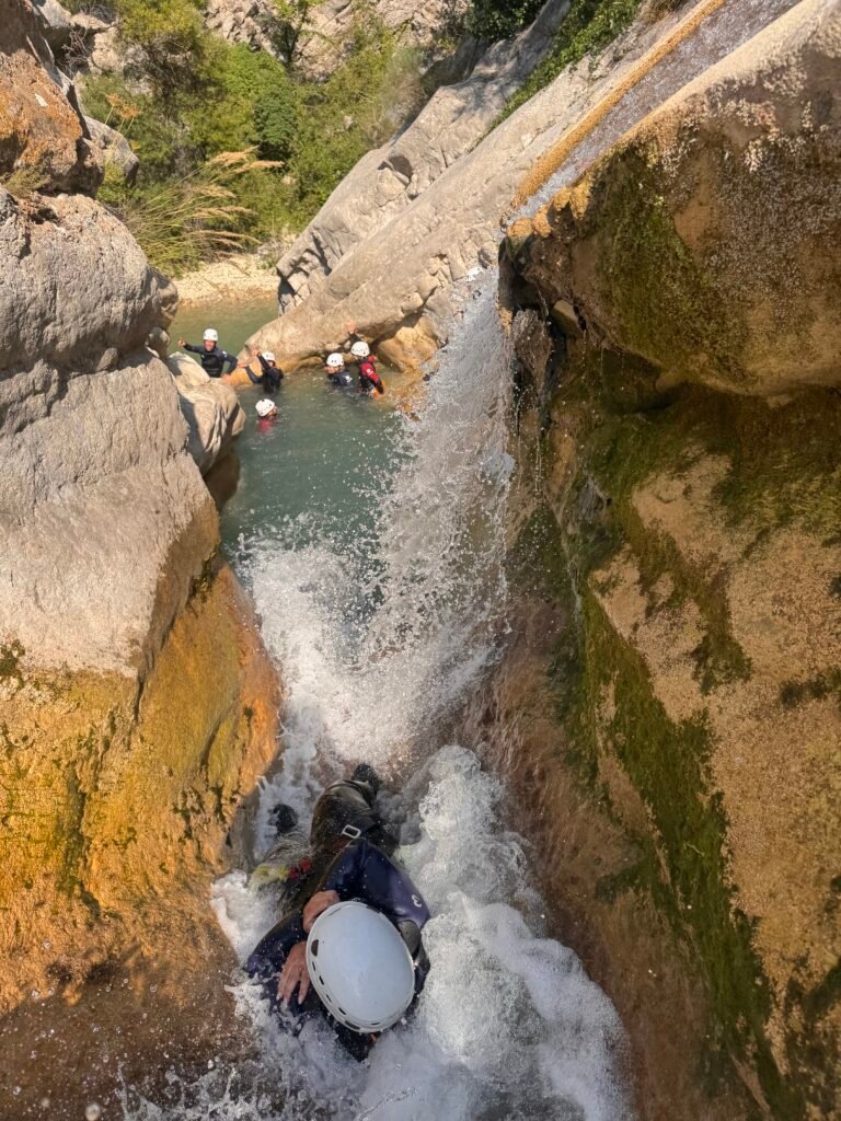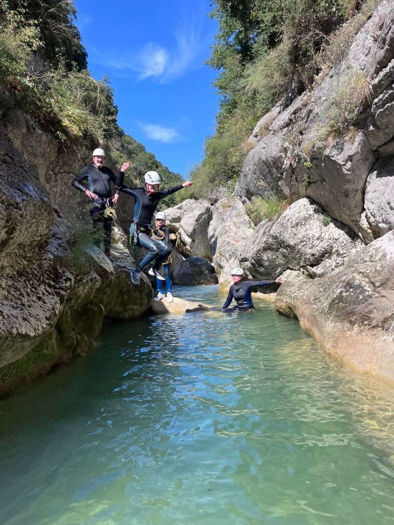 Dans ce parcours vous seront proposés de nombreux sauts allant de 1 à 7 m, quelques beaux toboggans, deux rappels et des passages improbables dans des grottes dont une sous une cascade pour remonter Sauter de plus haut et une carrément subaquatique!