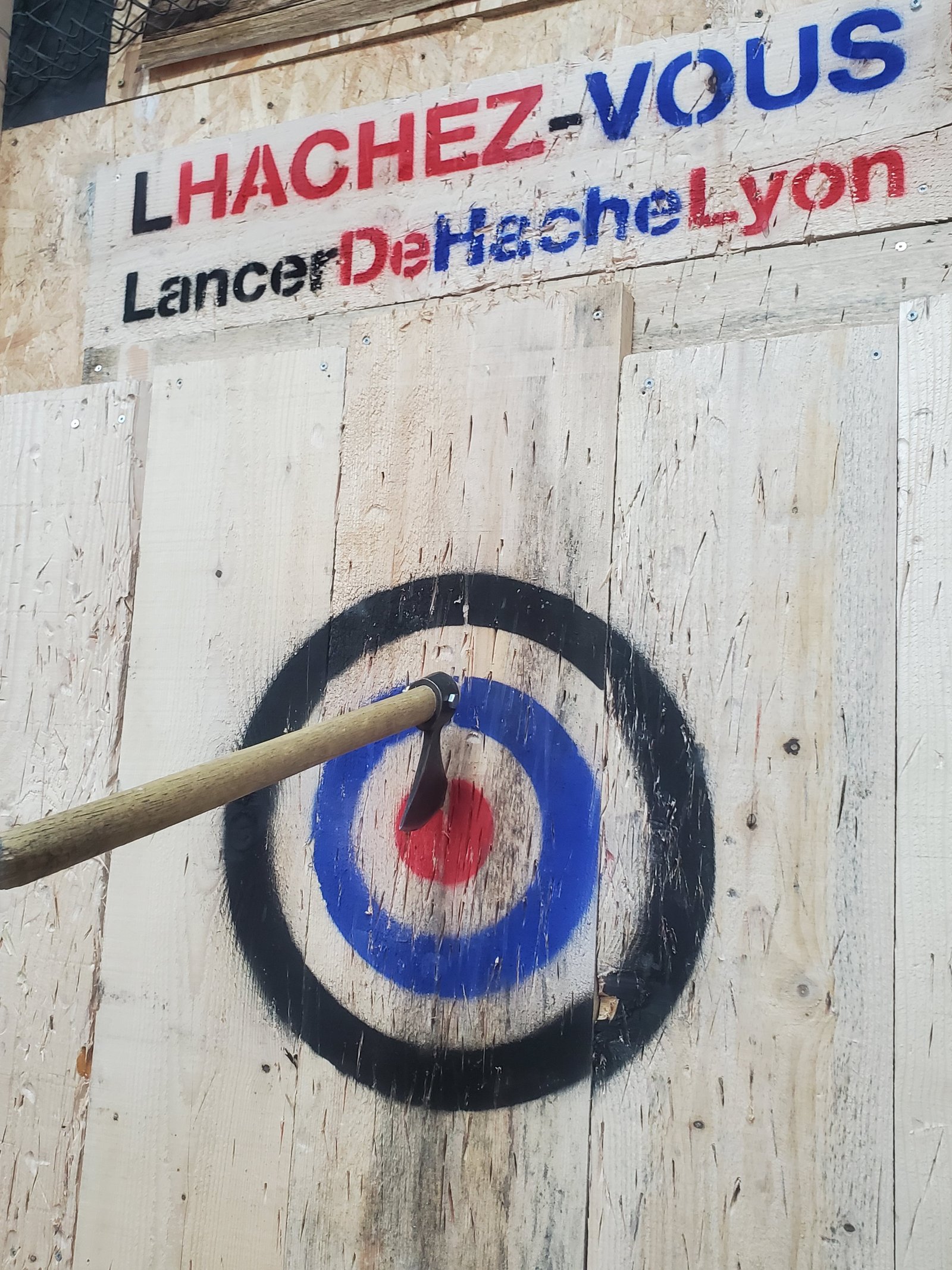 Depuis 2018, L’HACHEZ-VOUS-LancerDeHacheLyon est le premier centre à Lyon, où vous avez le droit de lancer des haches !