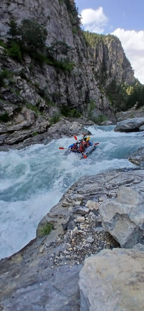 Rafting Sportif sur les plus belles des rivières sportives des Hautes Alpes et alentours: aux SOURCES DE LA DURANCE, le paradis français des sports d’eau vive, amateurs de sensations fortes et d’aventure, en équipe, montée d’adrénaline assurée – difficulté: cl 3-4-5 sur une échelle de 6.